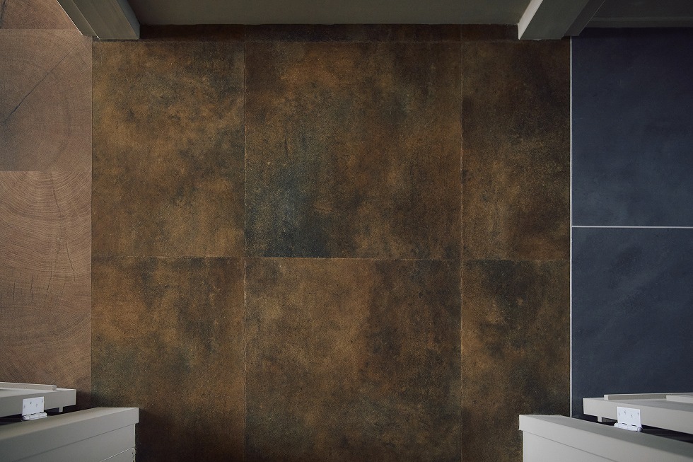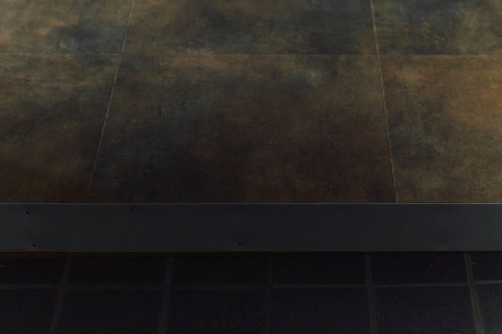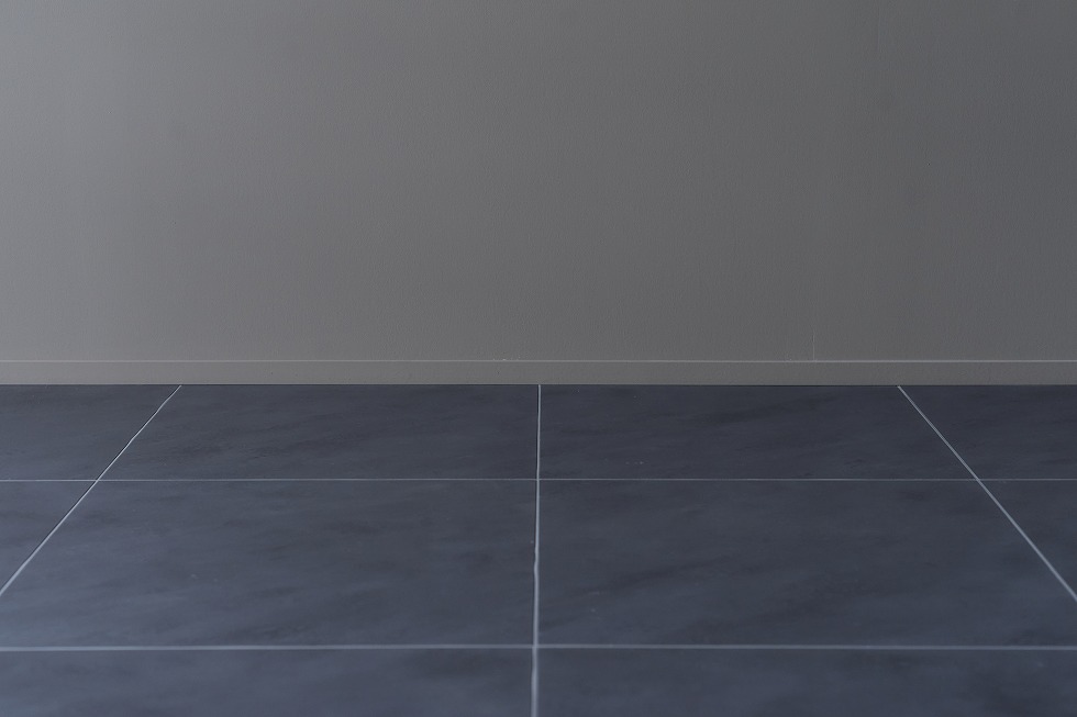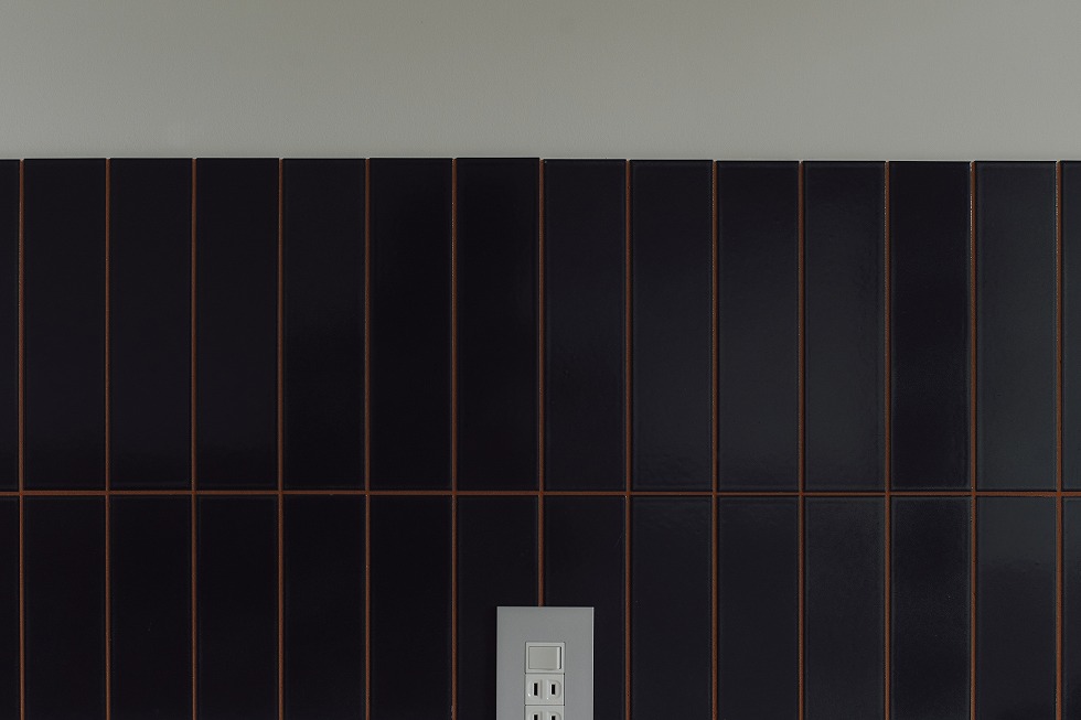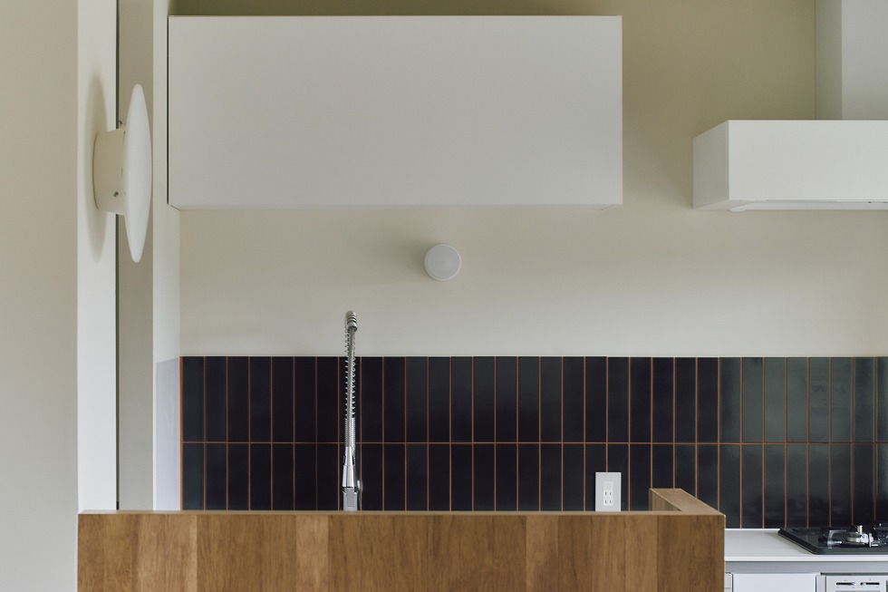 床の仕上げにはフローリングやタイルなど材料単価が高くなってしまう素材は使用せず、まず初めにPタイルにて統一することを決めていました。各部屋ごとでのPタイルの使い分け、見切りの付け方で安っぽさが出てしまわないように調整しています。この部分は、宮崎駿さんが自社ビルやオフィスのデザインをされる際に一番安価な材料帯から選定は行うが、組合せや色味によってバランスを調整しており、それこそがデザインである。とインタビューでお話しされていたことにインスピレーションを受けました。