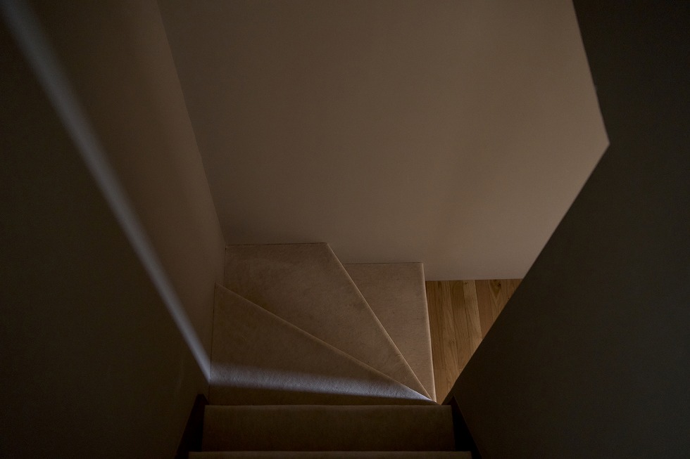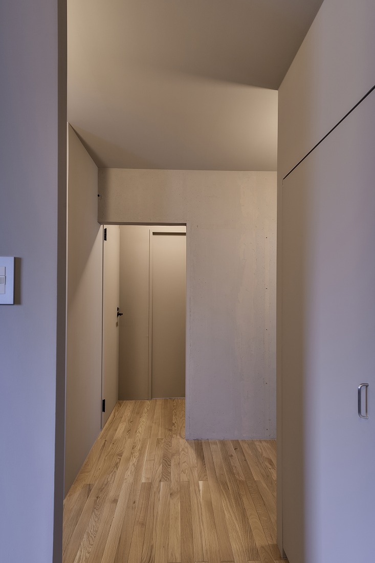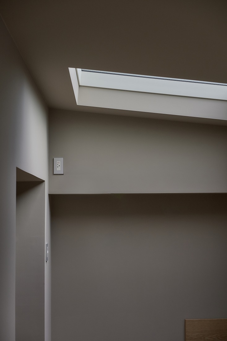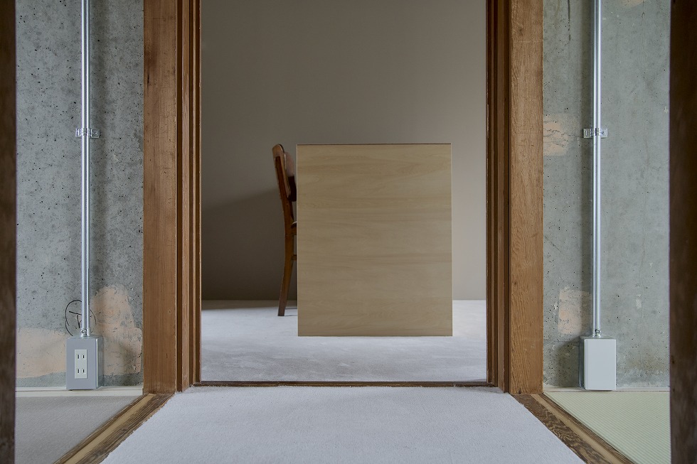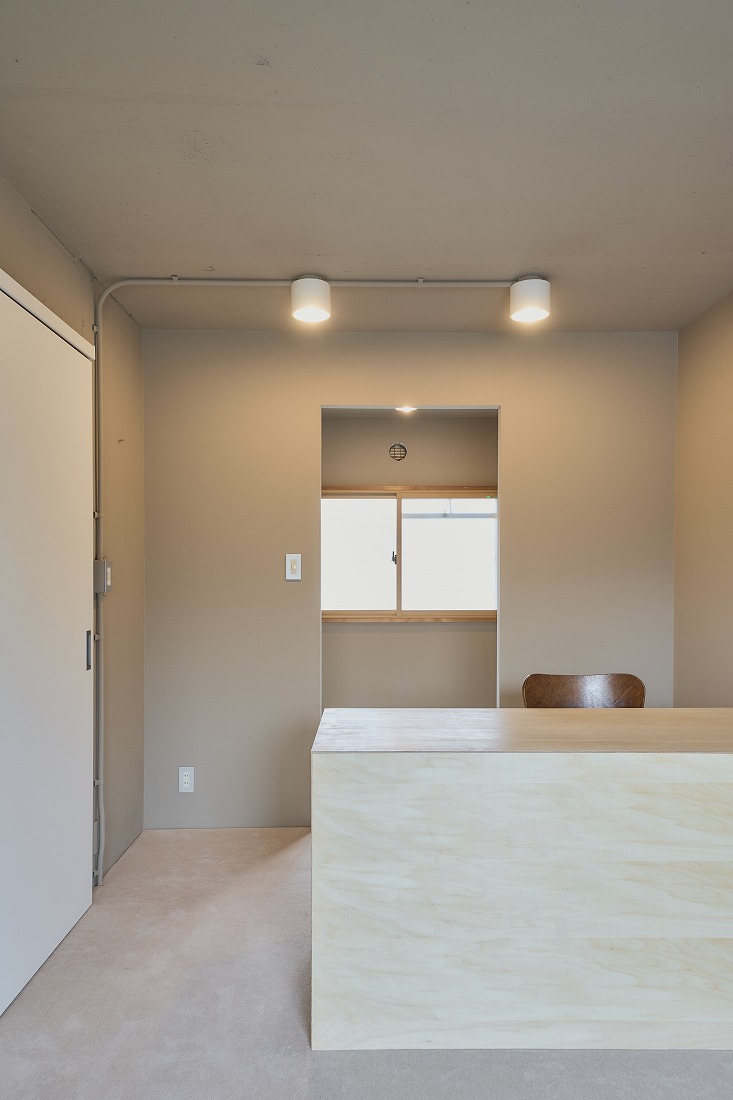 それ以外の壁・天井面は元々コンクリートに直接貼られていた壁紙を1週間以上かけて下紙まで剥がして、その上から塗装することでコンクリートの質感が出て、この部分の「重たさ」が空間をとても引き締めていると思います。