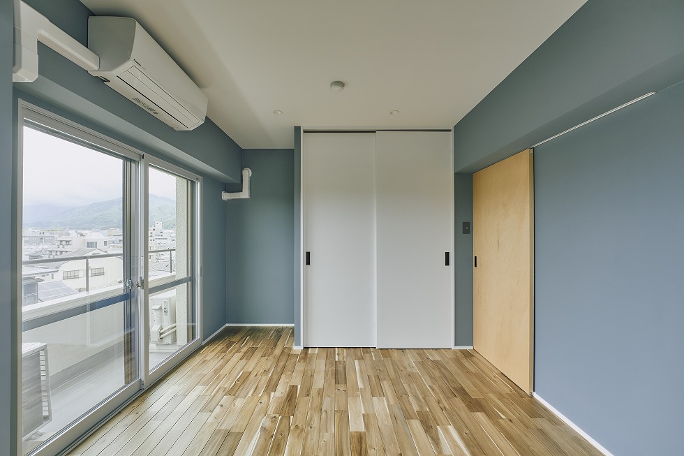 また、外周壁面には断熱材を可能な限り敷き込み、断熱と遮音効果を持たせて尚、インプラス/内窓を設置することで空調効果を高めながら、面している大通りの交通の音を防ぐことも併せて行いました。
