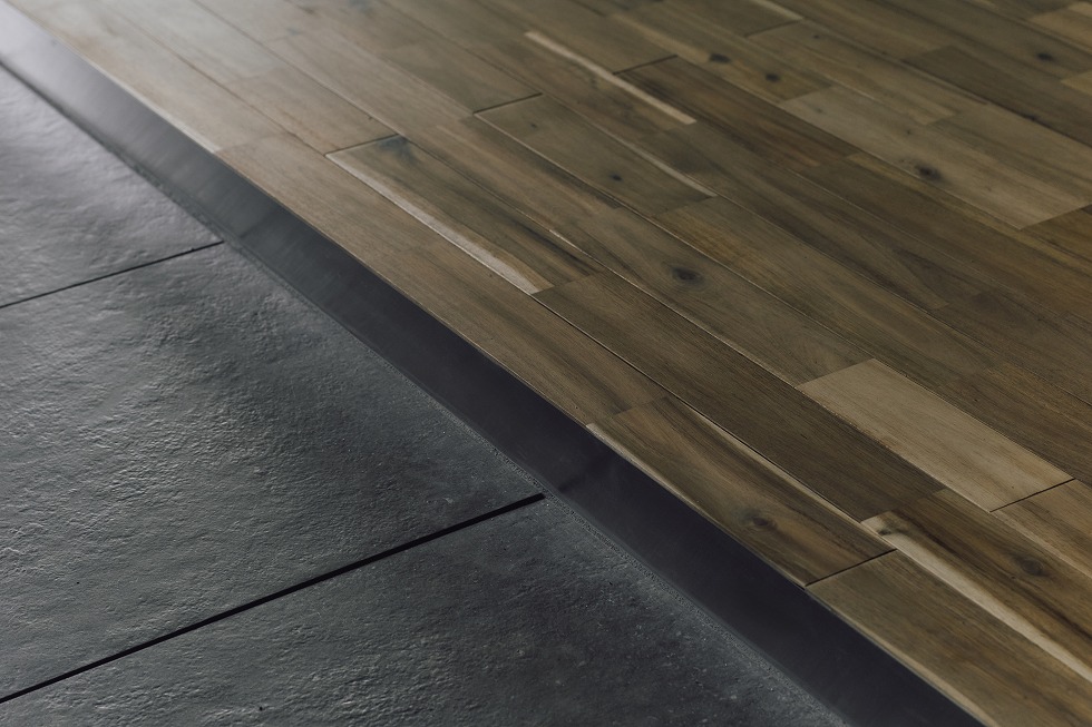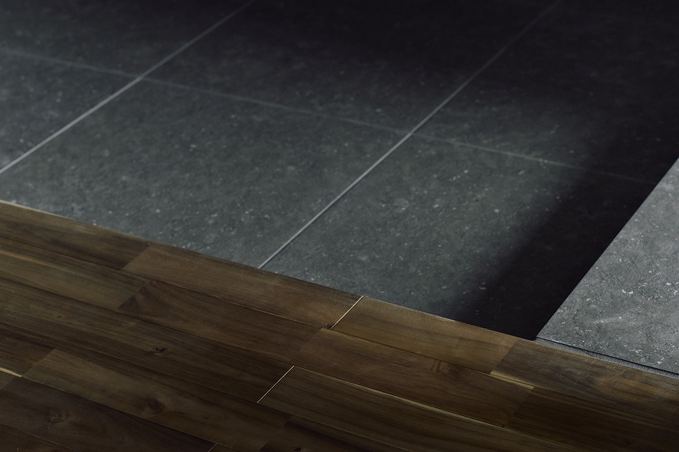 玄関扉を開けてから約5m続き、600mm角の大判タイルが貼られている玄関ホールは、広さのある室内であるからこそ可能な全体の広さをさらに際立たせながら、タイルの仕上げが空間をシャープにまとめているとても素敵な空間です。