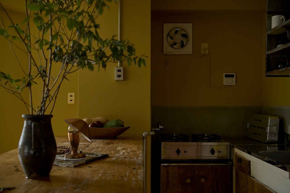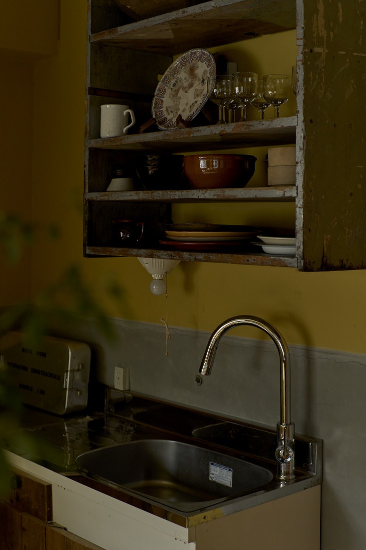 ご実家の古家を改装されたnakayaさんのお店は、よくあるプリントベニヤの壁、キッチンにタイル、そして換気扇といった、よくよく見慣れた「普通」のものなのに、なぜかすごく良く見える…。