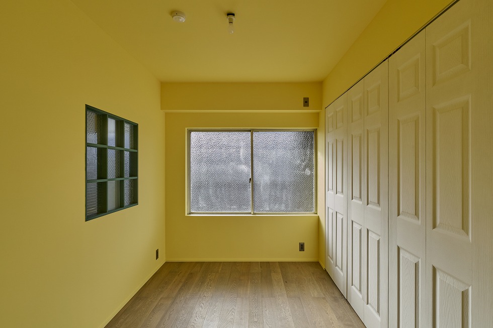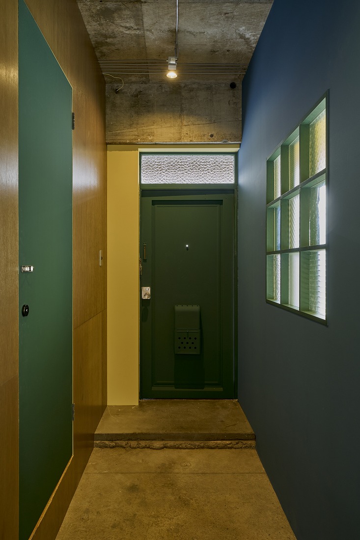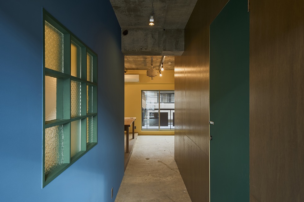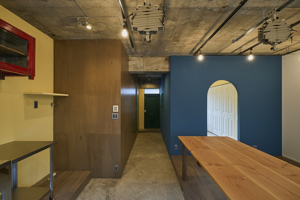 室内に使われている塗装色は5色で、そのうち1色分は、肌質を変えるためにあえてラワン合板を貼った上から着色するなど、色が渋滞しない様工夫を凝らしています。